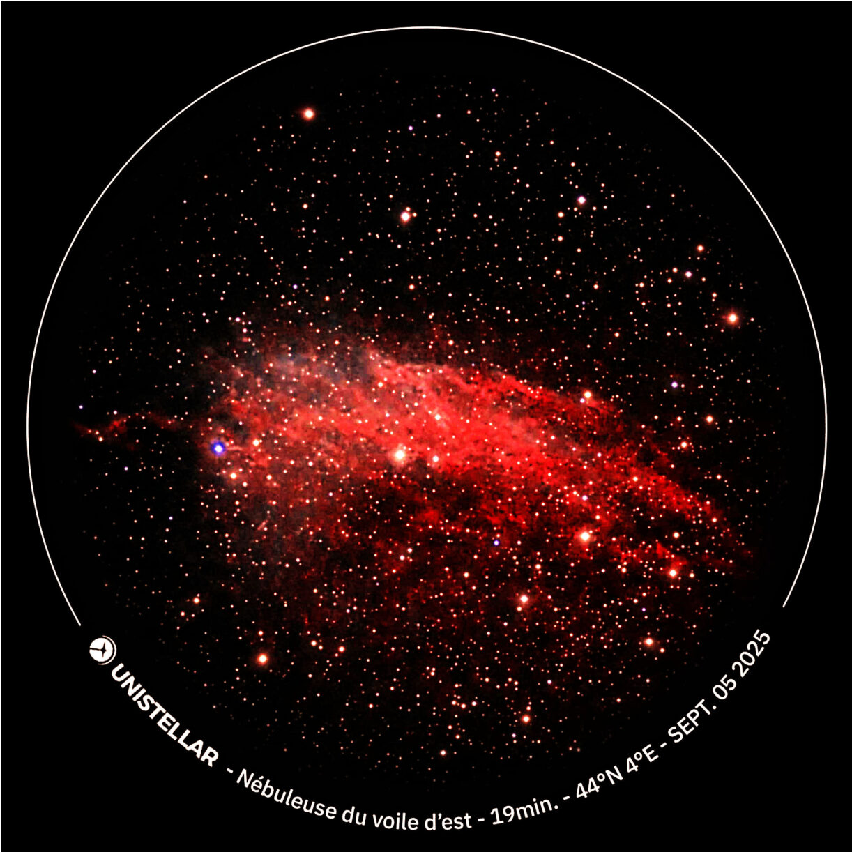 La nébuleuse du Voile de l’Est est un vestige de supernova dans la constellation du Cygne, le Cygne. Il s’agit d’un nuage en expansion composé de gaz et de poussières chauffés et ionisés, formé il y a environ 10 000 ans à la suite de l’explosion d’une étoile massive.